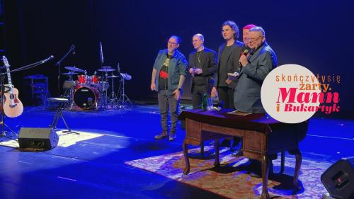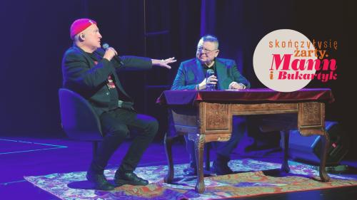 „Skończyły się żarty. Mann i Bukartyk” to wyjątkowe widowisko autorstwa tajemniczego pisarza widmo, prezentowane, z drobnymi zmianami, przez Wojciecha Manna oraz współpracującego z nim od ponad dwudziestu lat Piotra Bukartyka.