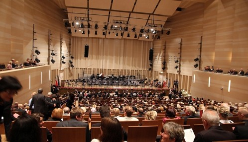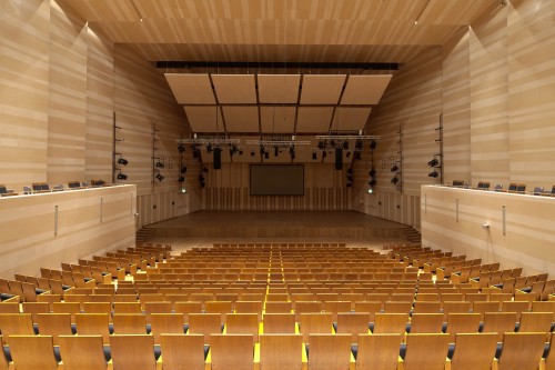 Główna sala koncertowa w stanie pomieścić 598 widzów. Wnętrze jest stonowane, obite jasnym drewnem, a siedzenia są utrzymane w ciemnym odcieniu. Wyjątkową cechą sali są tzw. mobilne reflektory akustyczne wiszące nad sceną, dzięki którym istnieje możliwość kreowania szeregu różnych scenariuszy dźwiękowych.
